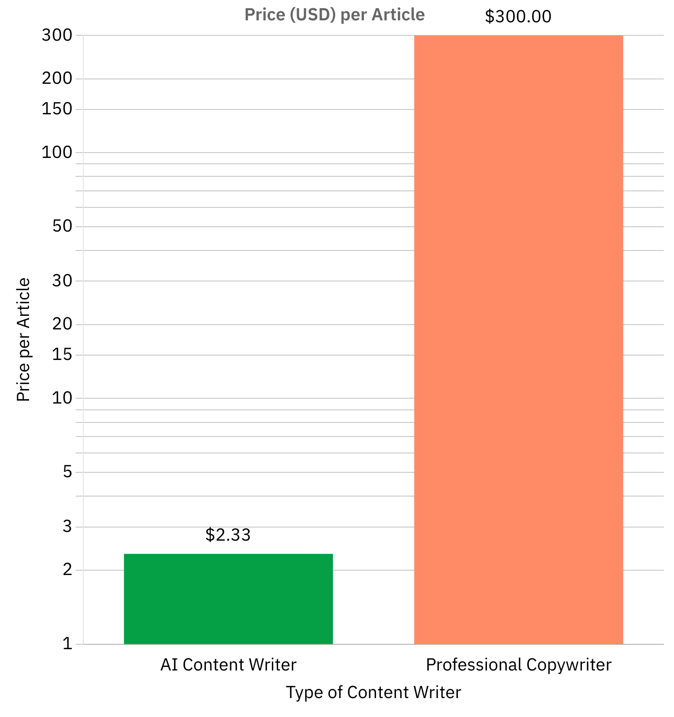 Industry data shows AI content is almost five times cheaper per piece compared to professional writers.